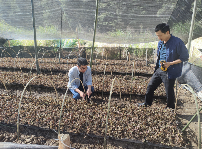 11月2日,我院药用所所长叶炜带领科特派成员王培育、李尊文前往永安进行科特派服务。一行人前往永安先锋顶,考察金线莲种植情况,指导农户进行金线莲野外种植。随后一行人前往葛州新村新福金线莲基地,考察该基地金线莲户外种植技术,帮助农户解决金线莲病害的难题。(药用所李尊文报道)(科研处曹家光审核)